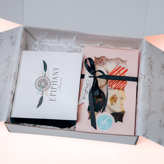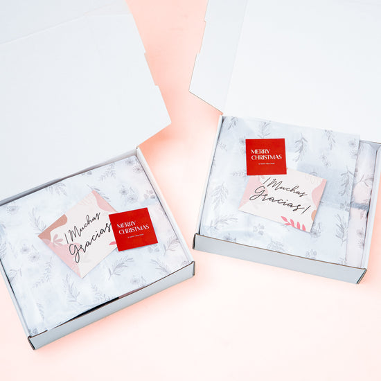 - Box Final: Empaque con lazo rosa, papelería personalizada.