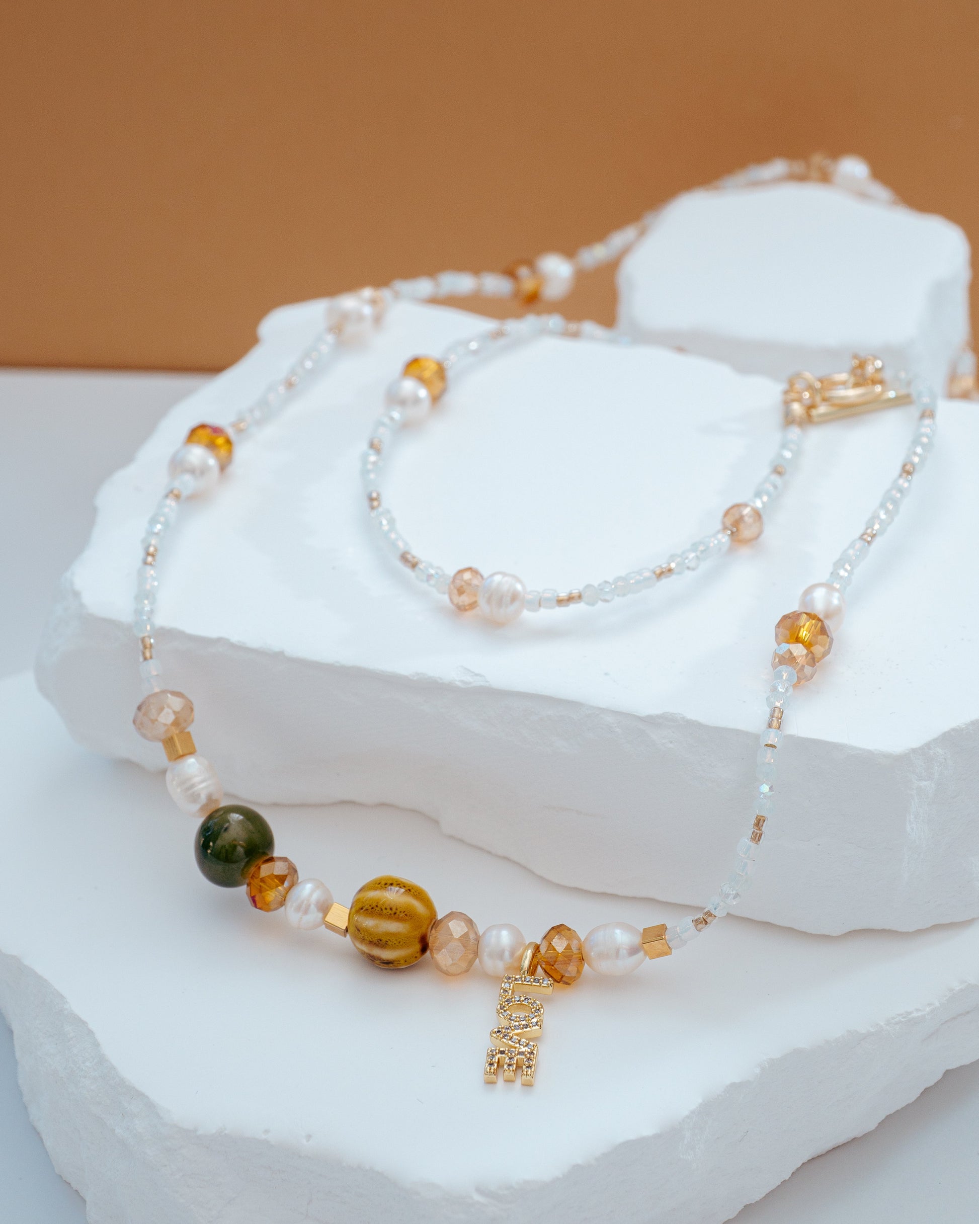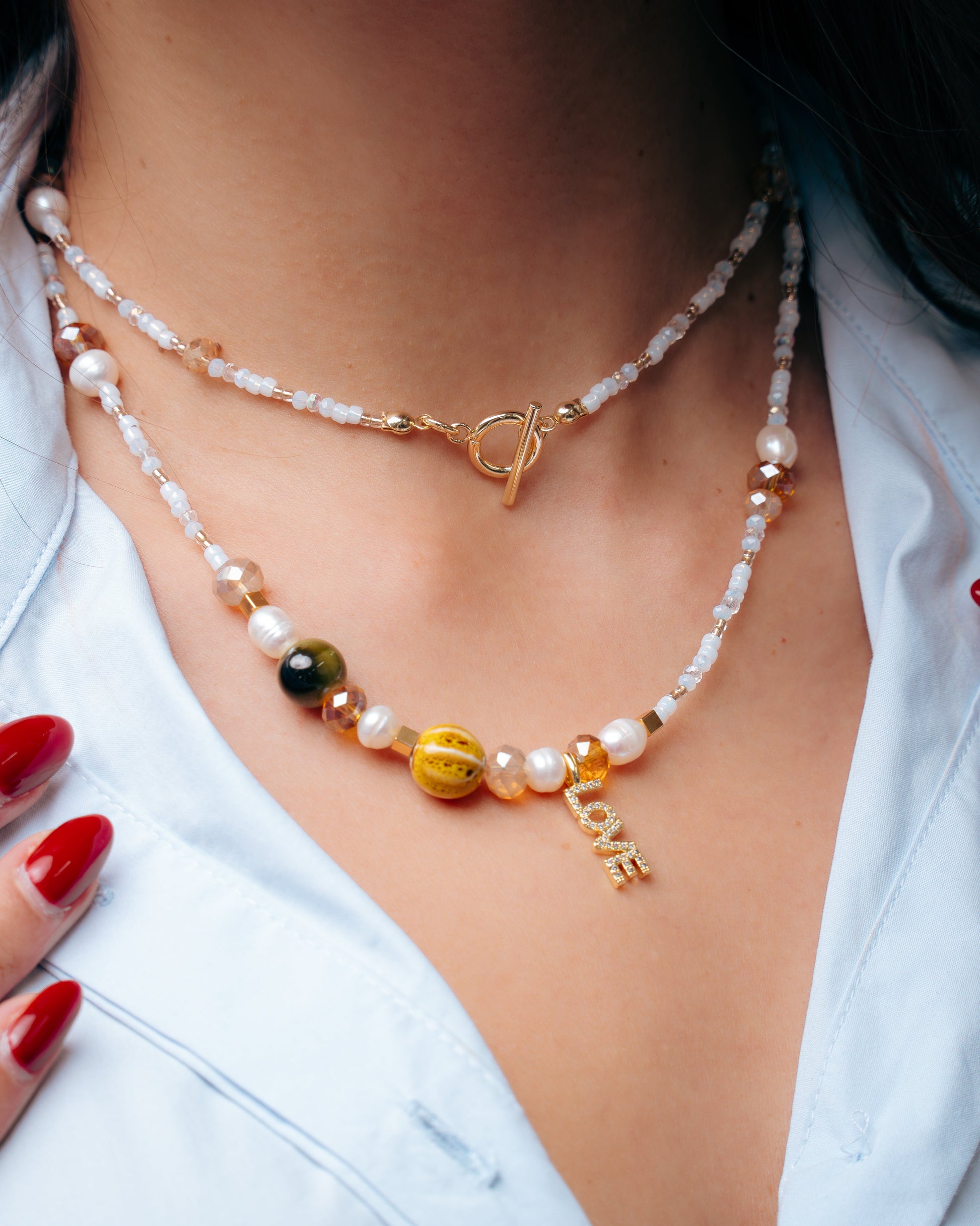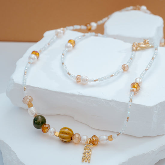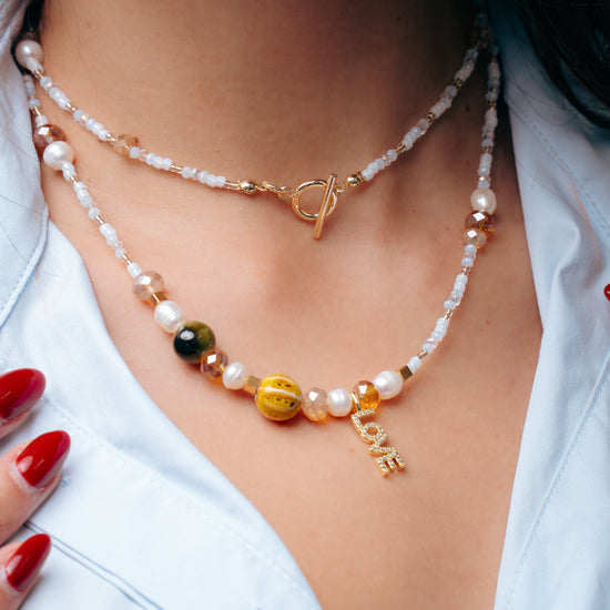 Un collar que se adapta al estilo de tu outfit, sus tonos y la mezcla de materiales lo hace un accesorio casual - chic que lo querrás llevar siempre.