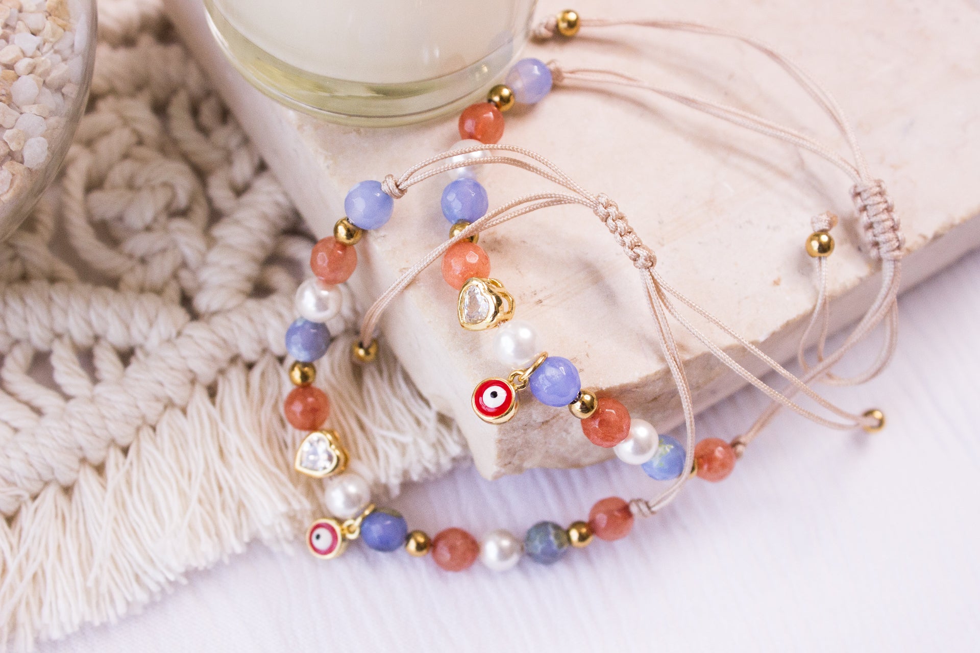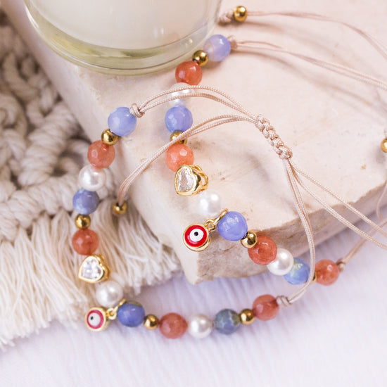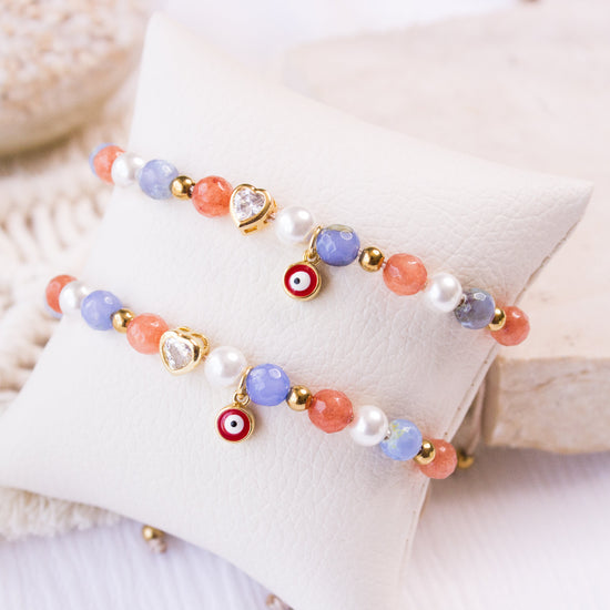 - Material: Perlas y piedras naturales