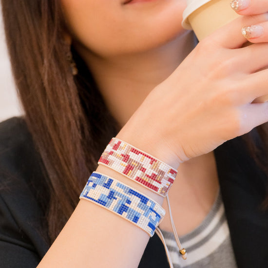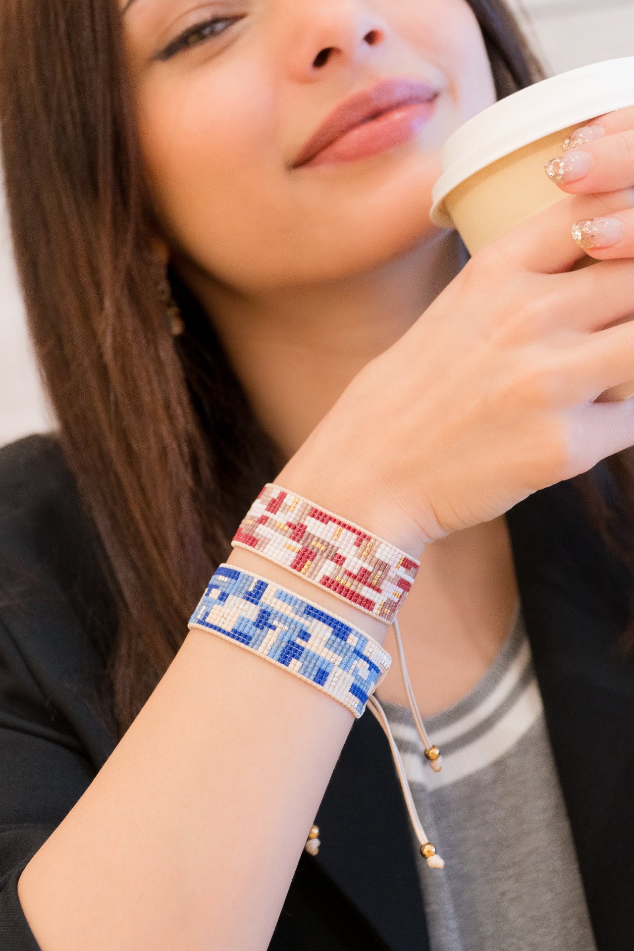 - Material: Delicas Miyuki y terminales de acero inoxidable bañados en oro